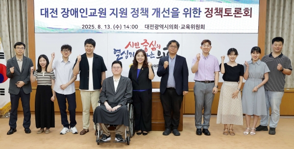 [충청25시] 대전시의회는 13일 시의회 소통실에서 김민숙 의원 주재로 ‘대전 장애인교원 지원 정책 개선을 위한 정책토론회'를 개최했다.