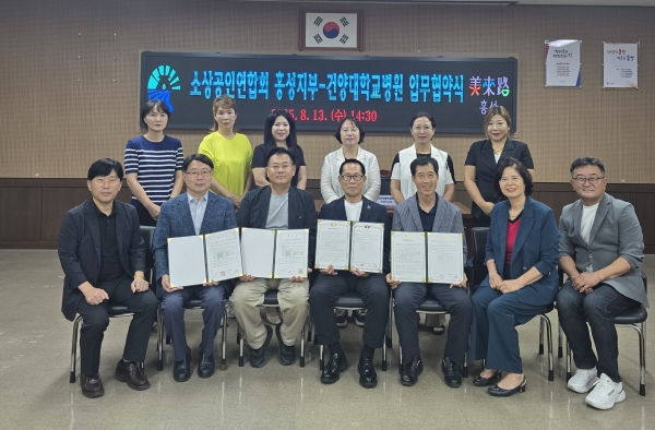 [충청25시] 홍성군은 지난 13일 홍성군청 회의실에서 소상공인연합회 홍성지부와 건양대학교병원이 종합건강검진과 장례식장 사용 업무협약을 체결했다고 알렸다.