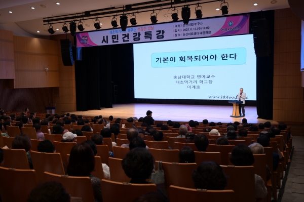 [충청25시] 논산시는 13일 논산아트센터 대공연장에서 건강한 식생활과 치매 예방을 주제로 ‘시민 건강 특강’을 개최했다.