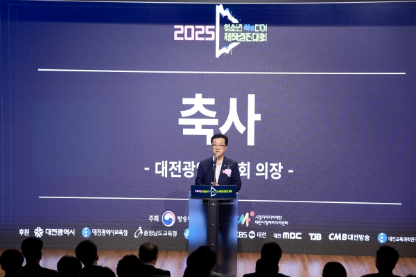 [충청25시] 대전시의회 조원휘 의장은 14일 대전시청자미디어센터에서 개최된 2025 청소년 미디어제작 경진대회 시상식에 참석해 대회의 성공적 개최를 기원하며 지역사회에 대한 청소년들의 높은 관심과 열정을 응원했다.