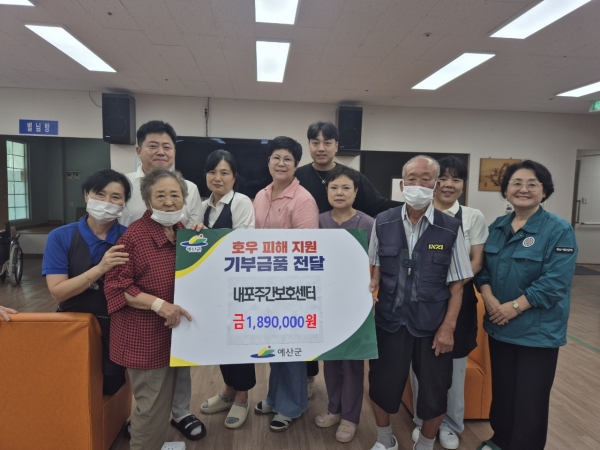 [충청25시] 예산군 내포주간보호센터는 지난 13일 최근 집중호우로 피해를 입은 이재민들을 돕기 위해 성금 189만원을 기탁했다고 밝혔다.
