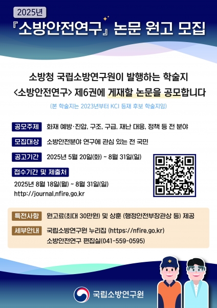 소방공무원을 포함한 관련 학계·연구자 등 전 국민이 참여할 수 있으며 게재 규모는 10~15편 내외다.