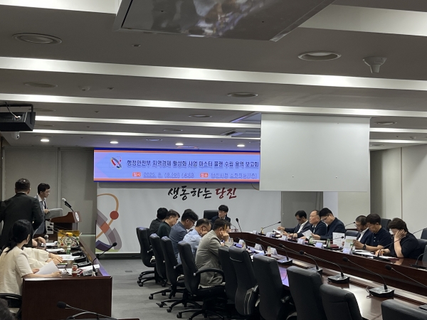 이날 회의에는 황침현 당진부시장을 비롯해 경제국장 및 관련 부서장 등 10명과 충남대학교, 건국대학교 교수, 충남지역공동체활성화 팀장 등 전문가 3명이 참석했다.