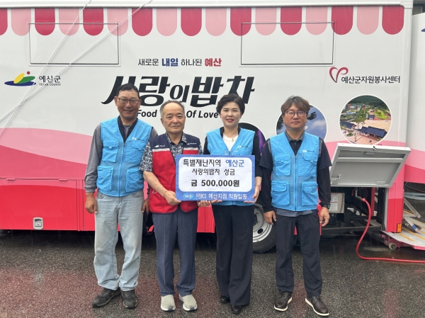 [충청25시] 예산군은 한전MCS 예산지점이 지난 7월 집중호우로 피해를 입은 주민들을 위해 식사 지원을 하고 있는 예산군자원봉사센터에 성금 50만원을 기탁했다고 20일 밝혔다.
