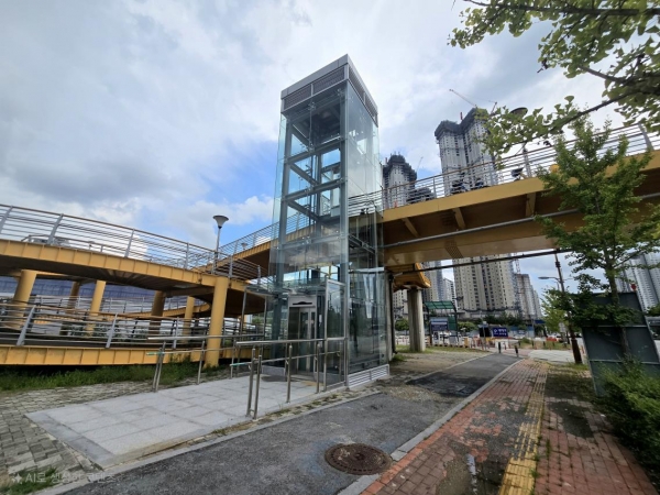 [충청25시] 아산시가 시민들의 안전하고 편리한 보행환경을 위해 KTX역 인근 호수육교에 설치한 2호기 엘리베이터를 본격 가동한다고 밝혔다.