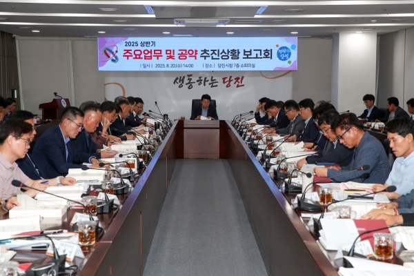 [충청25시] 당진시는 지난 20일부터 21일까지 2일간 당진시청 7층 소회의실에서 오성환 시장 주재로 2025년 상반기 주요업무 및 공약 추진상황 보고회를 개최했다고 22일 밝혔다.