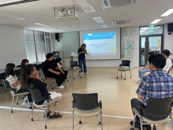 강연은 교육공동체조합 ‘노리아이’ 이명희 대표가 맡아 ‘놀이로 배우는 협동과 공감’을 주제로 진행됐다.