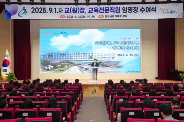 [충청25시] 충남교육청은 지난 25일 2025.9.1.자 인사 발령에 따른 교장, 교육전문직원에 대해 임명장을 25일 도교육청 대강당에서 수여했다.