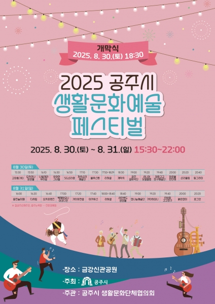 [충청25시] 공주시는 공주시 생활문화단체협의회와 함께 ‘2025 공주시 생활문화예술 축제’를 오는 8월 30일과 31일 이틀간 금강신관공원에서 연다고 밝혔다.
