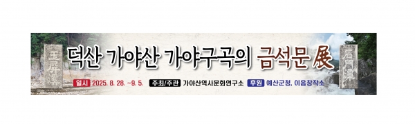 [충청25시] 예산군은 오는 8월 28일부터 9월 5일까지 이음창작소에서 ‘덕산 가야산 가야구곡 금석문 전시회’를 개최한다고 밝혔다.