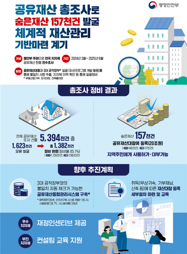 공유재산은 토지·건물 등 지방자치단체가 소유한 재산으로 전국 지방자치단체 공유재산 규모는 2024년 말 기준 1,103조 원에 달한다.