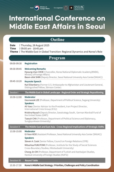 [충청25시] 외교부는 8.28. 서울대학교 아시아연구소와의 공동 주관 하 ‘서울 중동문제 국제회의’를 개최했다.