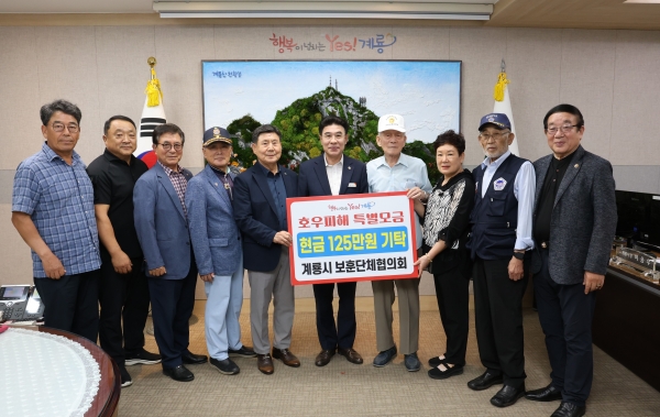 [충청25시] 계룡시는 1일 계룡시 보훈단체협의회가 호우피해를 입은 지역 주민들을 돕기 위해 성금 125만원을 기탁했다고 밝혔다.
