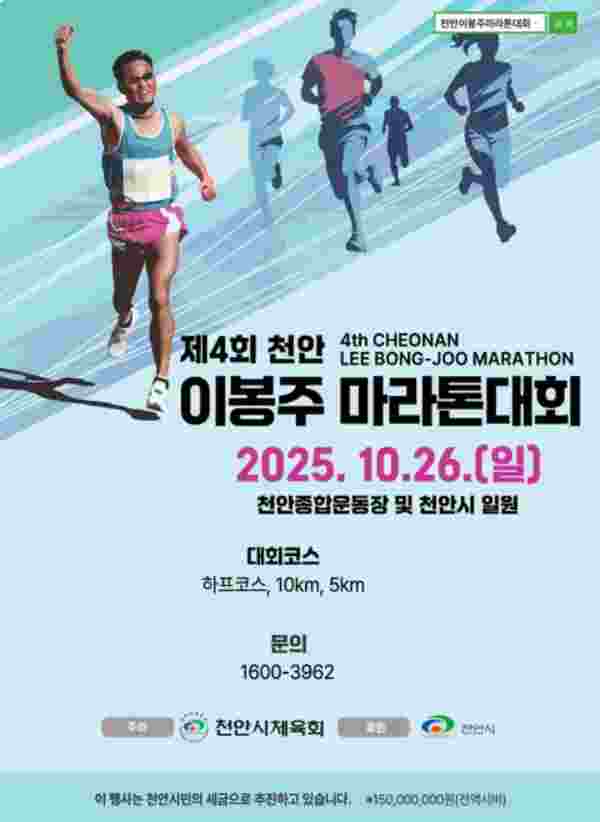 천안시체육회는 지난 2일부터 이봉주 마라톤대회 참가 신청을 받은 지 10여 분 만에 5,000명이 신청하면서 접수를 마쳤다고 3일 밝혔다.