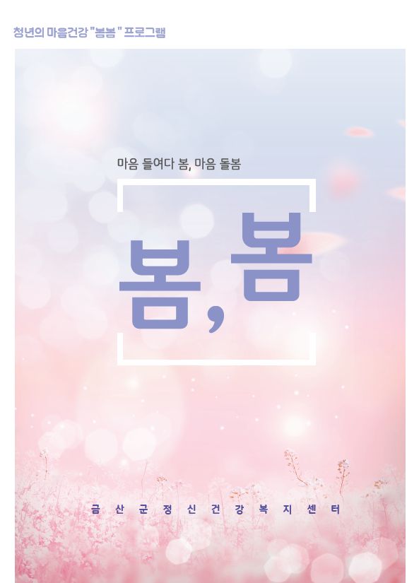 [충청25시] 금산군보건소와 금산군정신건강복지센터는 10월까지 19세 이상 35세 미만 우울 고위험군 청년을 대상으로 마음건강 프로그램 ‘봄, 봄’을 진행한다.