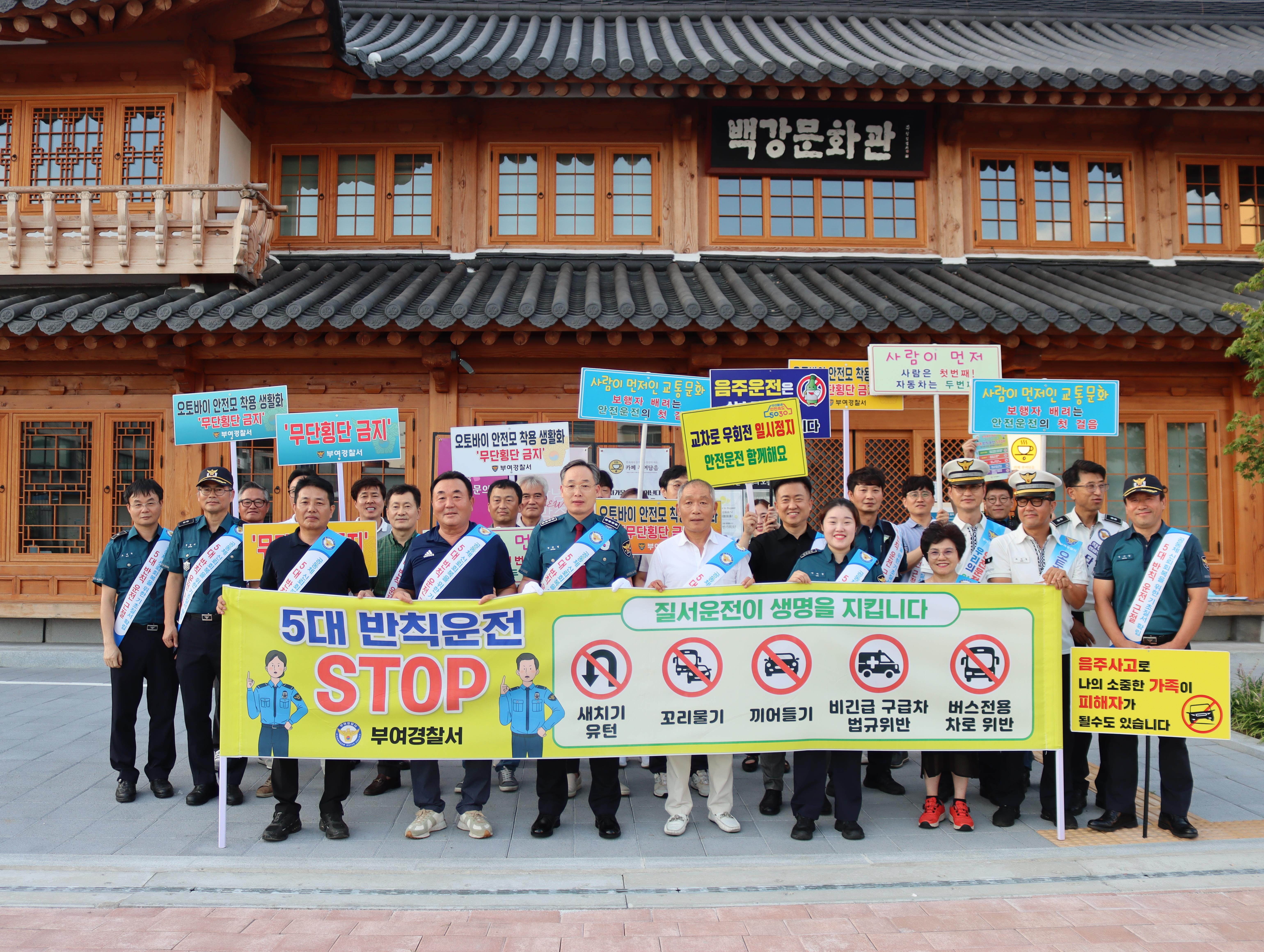 [충청25시] 부여경찰서(서장 정찬현)는 2일 각 과장·백강지구대·경찰서 직원 등 경찰발전협의회(회장 임승태) 회원이 참여한 가운데, 부여 백강문화원 사거리 앞에서 합동 캠페인에 나섰다.