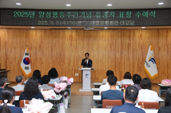 부여군수는 “양성평등은 어느 한쪽의 권리를 주장하는 것이 아니라, 서로 존중하며 함께 어울려 살아가는 사회의 기본 원리”며 “가정에서 부부가 동등하게 책임을 나누고 직장에서 남녀가 함께 성장하고 서로 존중하는 문화가 뿌리내릴 때 모두가 행복한 사회를 만들 수 있다”고 강조했다.