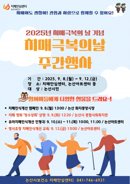 [충청25시] 논산시는 ‘치매여도 괜찮아 관심과 사랑으로 함께 할 수 있어요’라는 주제로 오는 9월 8일부터 12일까지 ‘2025년 치매 극복의 날’ 주간행사를 운영한다.