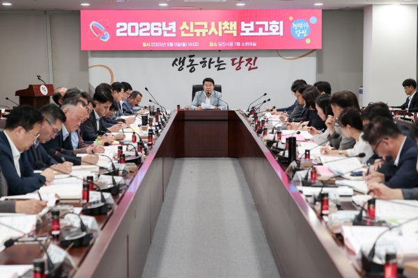 [충청25시] 당진시는 지난 8일 당진시청 소회의실에서 오성환 시장 주재로 부서장들이 참석한 가운데 2026년 신규시책 보고회를 개최했다고 9일 밝혔다.