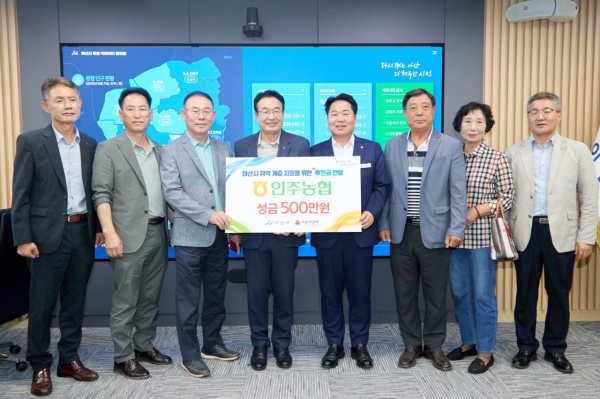 [충청25시] 아산시는 9일 인주농협 임직원들이 지역 취약계층을 지원하기 위해 성금 500만원을 기부했다고 밝혔다.