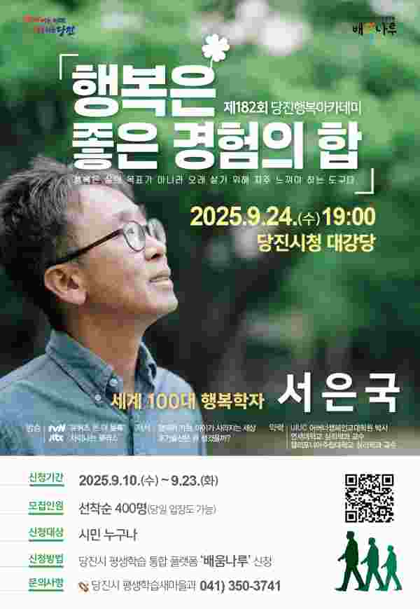 [충청25시] 당진시는 오는 24일 오후 7시 당진시청 대강당에서 제182회 행복아카데미를 개최한다고 11일 밝혔다.