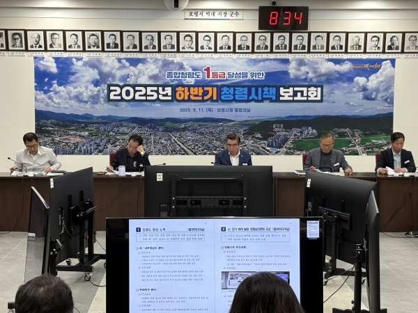 [충청25시] 보령시는 11일 시청 중회의실에서 김동일 시장과 부시장, 국장, 실·과장 등이 참석한 가운데 시장 주재로 2025년도 하반기 청렴 시책 보고회를 개최했다.