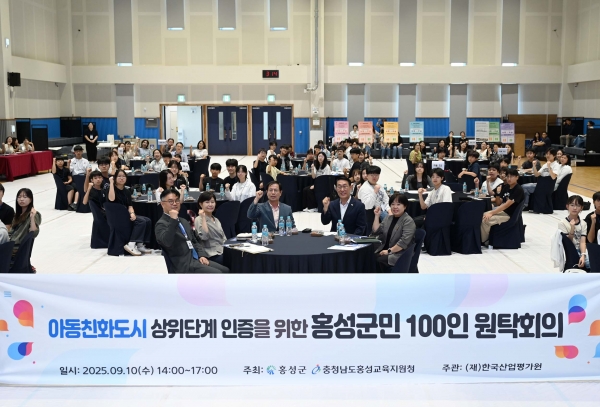 [충청25시] 홍성군은 지난 10일 홍성국민체육센터에서 학생, 아동 관계자, 보호자 등 군민 100여명과 함께 아동친화 정책 발굴을 위한 군민참여토론회를 개최했다고 밝혔다.