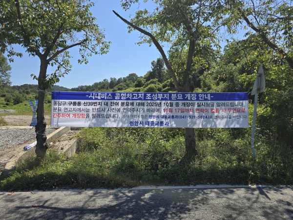 [충청25시] 천안시가 남부권 시내버스 공영차고지 조성사업 사업부지 내 분묘개장을 추진한다.