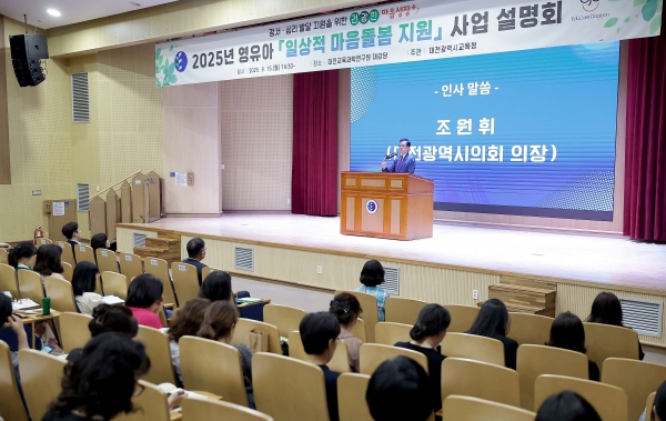 [충청25시] 대전시의회 조원휘 의장은 15일 대전교육과학연구원에서 개최된 2025년 영유아 일상적 마음돌봄 지원사업 설명회에 참석해 보육 일선에서 최선을 다하는 보육인들께 감사를 표하고 아이들과 보육인들 모두 행복한 보육환경 조성을 약속했다.