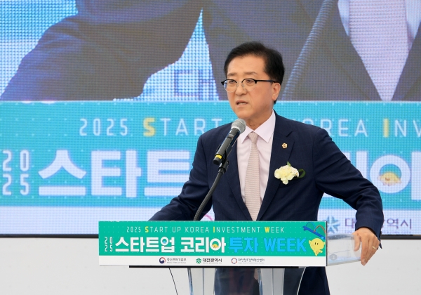 [충청25시] 대전시의회 조원휘 의장은 16일 욧골문화공원에서 개최된 2025 스타트업 코리아 투자위크에 참석해 창업기업의 거침없는 도전과 전진을 응원했다.
