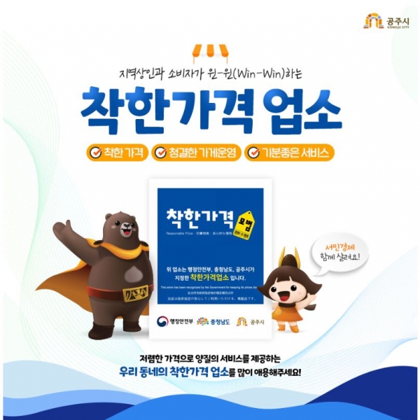 [충청25시] 공주시는 저렴한 가격으로 지역 물가 안정에 기여하고 있는 ‘착한가격업소’를 오는 24일까지 공개 모집한다고 밝혔다.