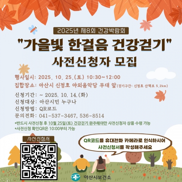 이번 행사는 아산시민 누구나 참여할 수 있으며 참여를 희망하는 시민은 10월 14일까지 QR 인증을 통해 사전 신청해야 한다.
