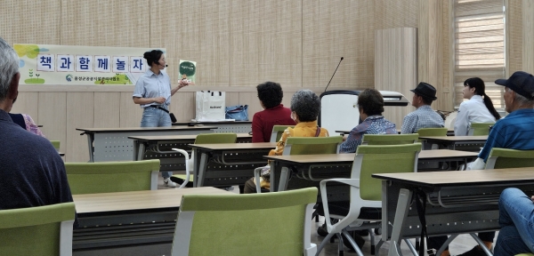 [충청25시] 홍성군 공공시설관리사업소는 홍성군보건소 치매안심센터와 협업해 오는 11월까지 어르신들의 인지능력 향상과 치매예방을 위한 책놀이 프로그램 ‘책과 함께 놀자’를 운영한다.