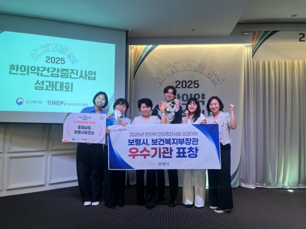 [충청25시] 보령시보건소는 지난 19일 보건복지부에서 주관한 ‘2025년 한의약건강증진사업 성과대회’에서 우수기관으로 선정되어 보건복지부장관 표창을 수상했다고 밝혔다.