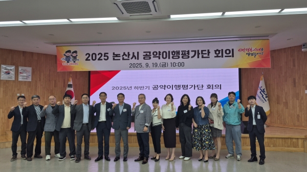 [충청25시] 논산시는 19일 시청 회의실에서 공약 추진 상황 점검을 위한 공약이행평가단 회의를 열고 민선8기 공약 전반의 이행 상황을 점검했다.