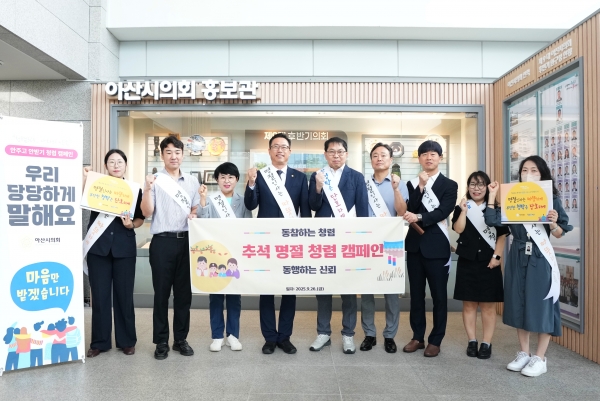 [충청25시] 아산시의회는 26일 추석 명절을 앞두고 의회동 1층 로비에서 청렴캠페인을 실시했다.