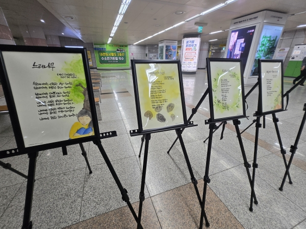 [충청25시] 대전서부교육지원청은 9월 29일부터 10월 17일까지 대전시청역 대합실에서 2025학년도 사제동행 독서문학기행 참가자 28명의 시화 작품 전시회 ‘詩-만나다 반하다 노래하다’ 시화전을 개최한다고 밝혔다 ‘詩-만나다 반하다 노래하다’는 시를 만나고 반하고 노래하는 3단계로 이루어지는 2025학년도 사제동행 독서문학기행 프로그램이다.