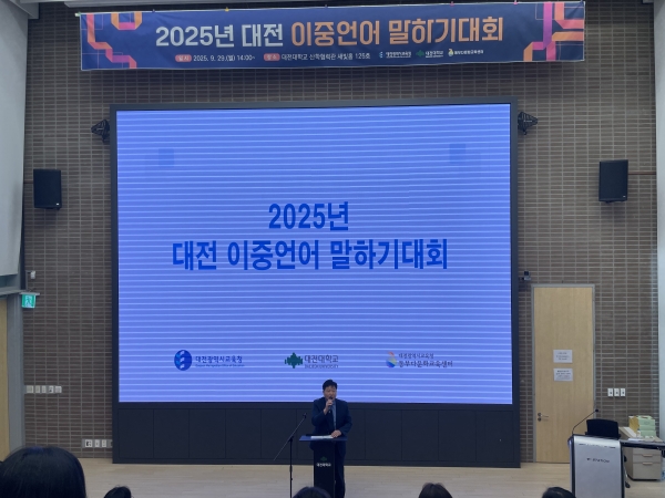 [충청25시] 대전시교육청은 9월 29일 대전대학교 산학협력관에서 대전지역 초·중·고등학생 34명이 참여하는 ‘2025년 대전이중언어말하기대회’를 성황리에 개최했다고 밝혔다.