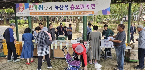 [충청25시] 계룡시품목농업인연구연합회는 민족 고유 명절인 추석을 맞아 30일 엄사1호공원에서 ‘계룡시 농산물 홍보판촉전’을 개최했다.