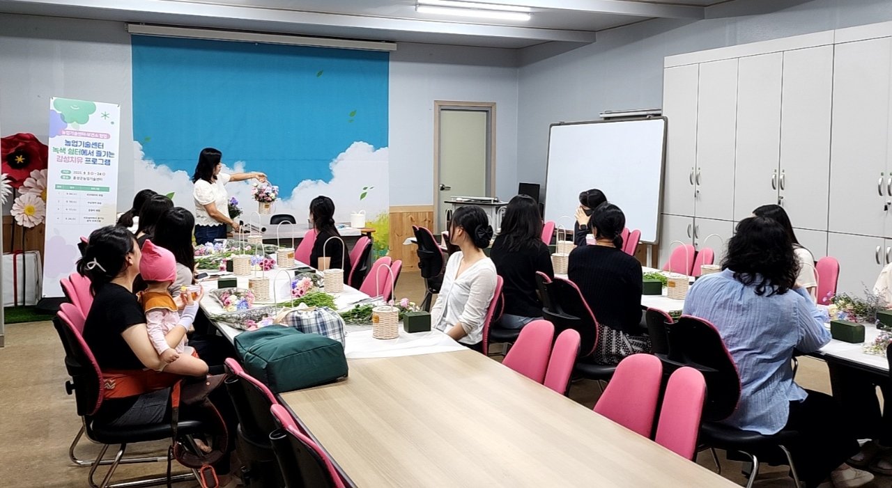 [충청25시] 홍성군농업기술센터가 보건소와 협력해 임산부와 난임부부를 대상으로 감성치유 프로그램을 운영한 결과 큰 호응을 얻었다. 이번 프로그램은 정서적 안정과 건강한 임신- 출산 환경을 돕기 위해 마련됐으며, 농업- 농촌 자원에 인문- 예술 요소를 접목한 체험형 방식으로 진행됐다.
