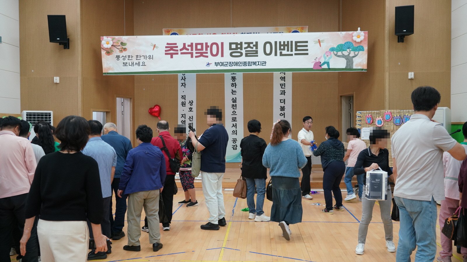 [충청25시] 부여군장애인종합복지관(관장 손기영)은 장애인종합복지관에서 ‘추석맞이 명절 이벤트’를 열어 이용자와 함께 어울리며 따뜻한 명절 분위기를 나누었다고 10일 밝혔다.