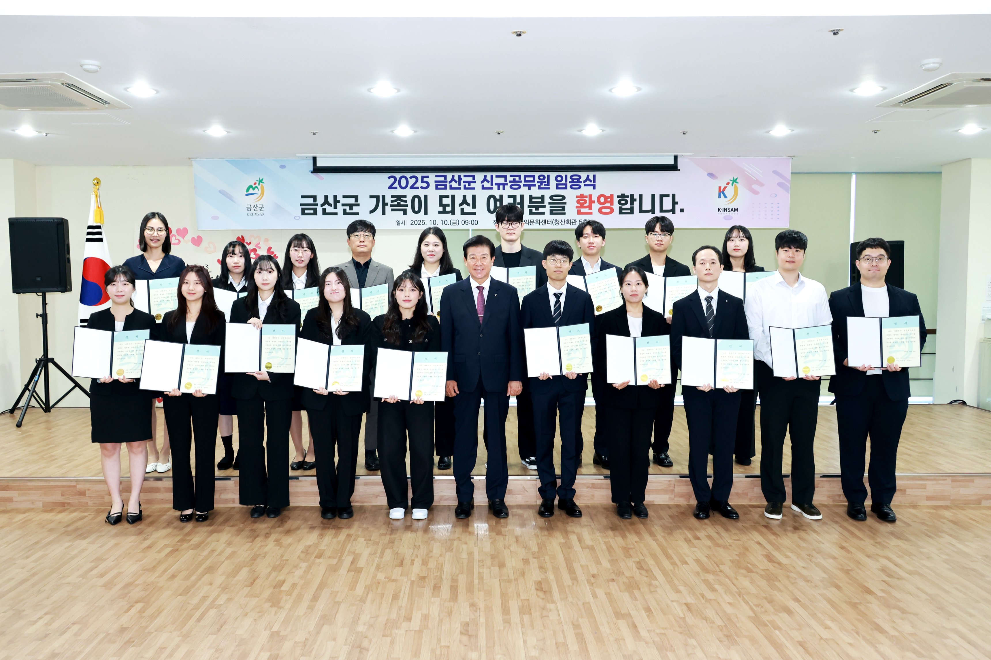 [충청25시] 금산군은 지난 10일 금산읍 청산회관에서 2025년도 신규공무원 임용장 수여식을 개최했다.