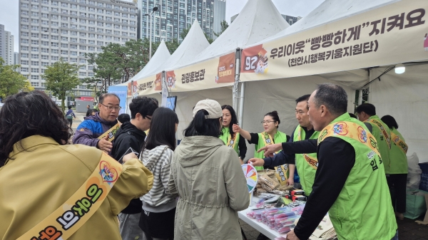 [충청25시] 천안시는 지난 18~19일 이틀간 천안종합운동장에서 열린 ‘2025 빵빵데이 천안’ 축제 현장에서 숨은 위기가구 발굴을 위한 ‘우리이웃, 빵빵하게 지켜요’ 행복키움지원단 홍보부스를 운영했다.