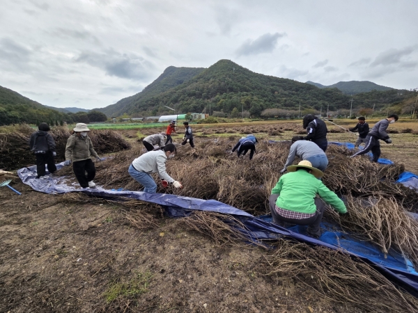 [충청25시] 금산군청 민원지적과는 지난 21일 군북면 산안리의 농가를 방문해 가을철 농촌일손돕기를 전개했다.