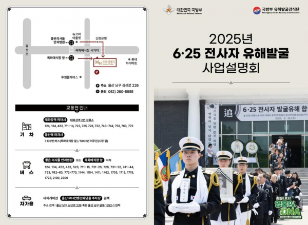 [충청25시] 국방부유해발굴감식단은 10월 22일 울산광역시 남구에서 2025년 하반기 6·25전사자 유해발굴사업 설명회를 개최했다.