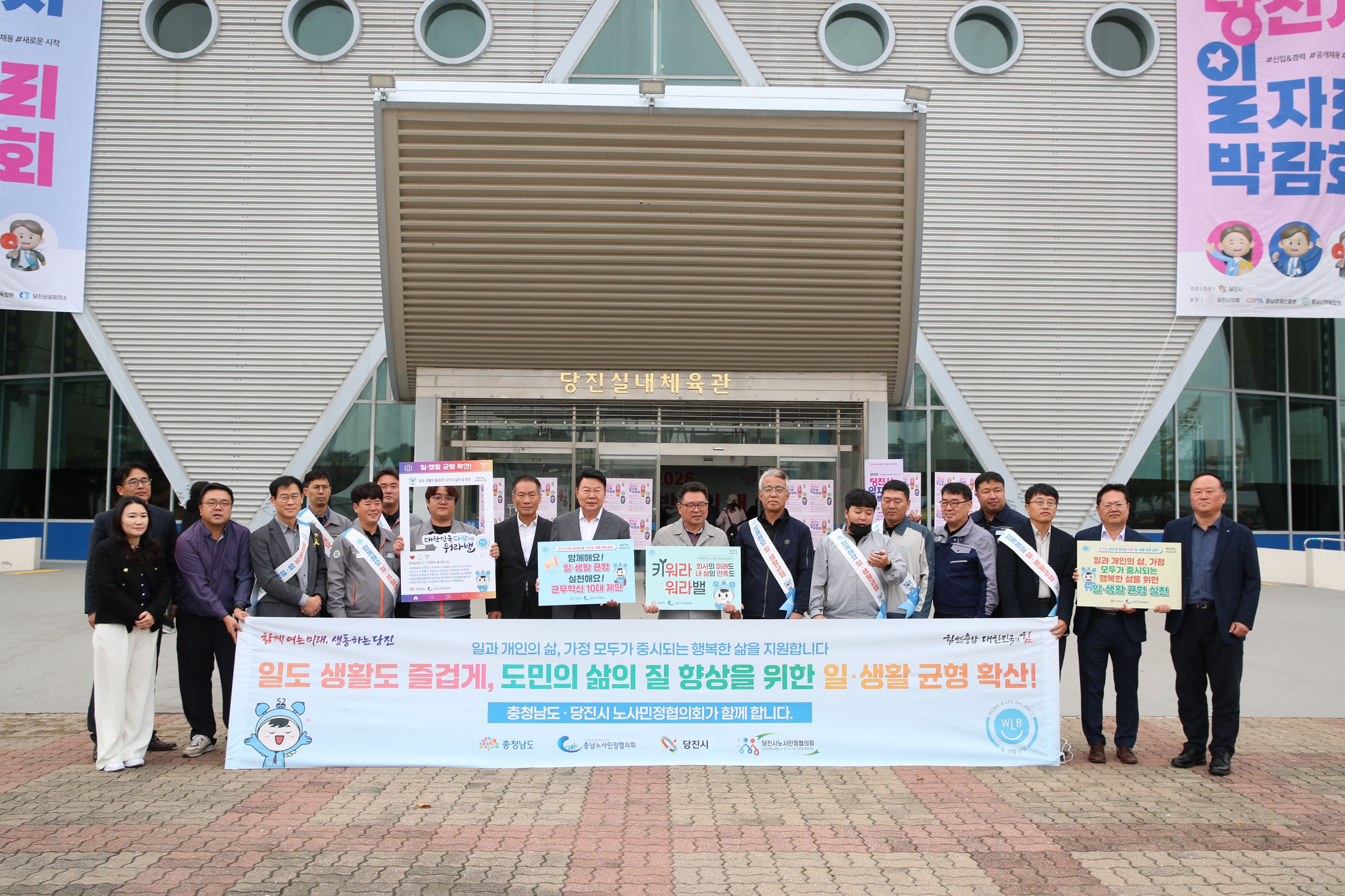 [충청25시] 당진시(시장 오성환)는 충남노사민정협의회와 지난 21일 당진실내체육관에서 ‘일·생활 균형 확산 및 노동 전환 지원을 위한 공동선언 릴레이 캠페인’을 개최했다고 23일 밝혔다.