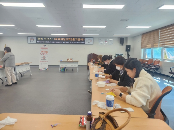 [충청25시] 공주시 옥룡동은 지난 22일 행정복지센터에서 공주시가족센터와 협력해 결혼이민자를 대상으로 한지공예 체험과 폭력예방교육을 진행했다고 밝혔다.