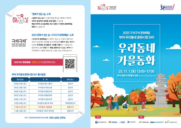 [충청25시] 부여군은 오는 11월 1일 오후 1시부터 5시까지 정림사지 일원에서 ‘2025 문화가 있는 날 ‘구석구석 문화배달’’ 일곱 번째 이야기 ‘우리동네 가을동화’를 개최한다고 밝혔다.