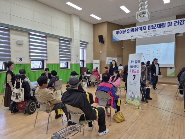 [충청25시] 부여군은 지난 10월 22일 지체, 뇌병변 장애인을 대상으로 장애인 가정과 부여군장애인종합복지관에서 방문 재활 및 건강상담 프로그램을 운영했다.