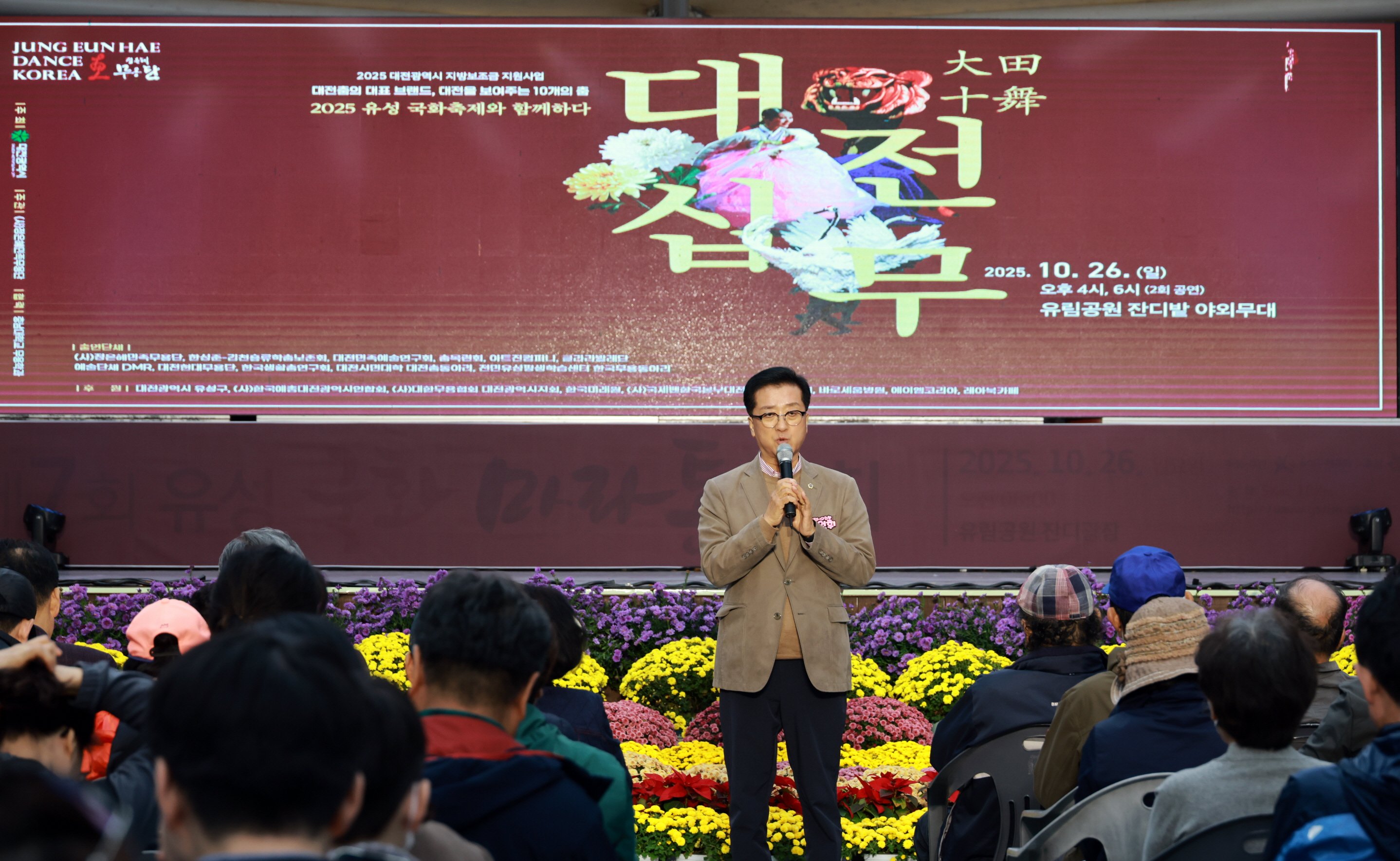 [충청25시] 대전시의회 조원휘 의장은 26일 유림공원(유성구 봉명동)에서 열린 2025 대전십무 공연에 참석해 지역 문화예술 발전을 위한 정책적 관심과 지원 의지를 밝혔다.